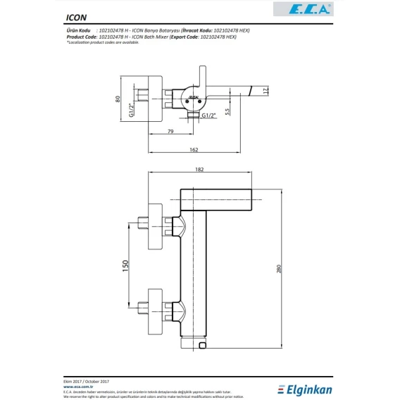 Смеситель для ванны E.C.A Icon 102102478HEX