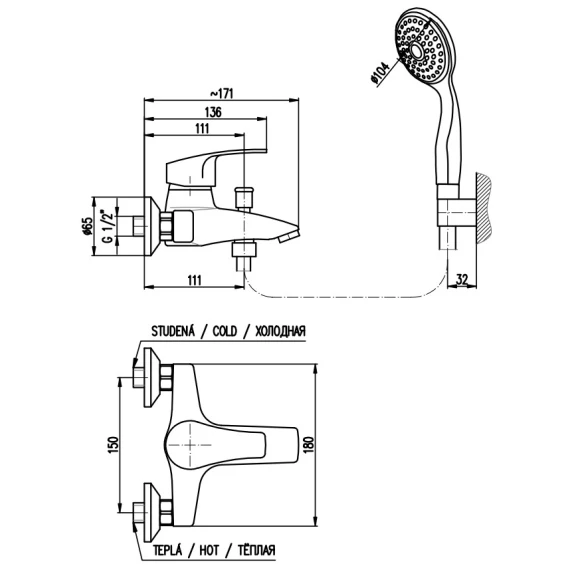 Смеситель для ванны Rav Slezak Kongo K054.5/1