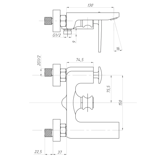 Смеситель для ванны ПСМ-Профсан Дизайн PSM-500-1