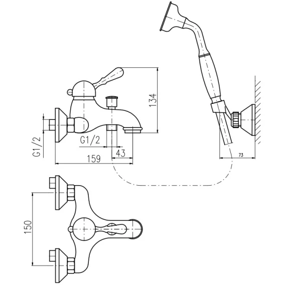 Аэратор, Металлическая розетка, Эксцентрики, Душевой шланг, Душевая лейка, Держатель для душевой лейки