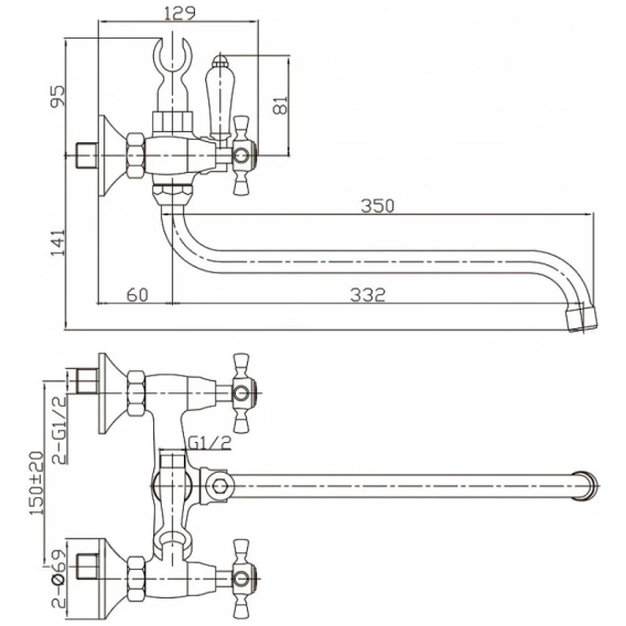 Аэратор, Металлическая розетка, Эксцентрики, Душевой шланг, Душевая лейка, Держатель для душевой лейки