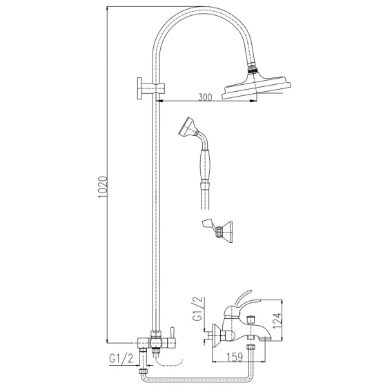 Аэратор, Металлическая розетка, Эксцентрики, Душевой шланг, Душевая лейка, Держатель для душевой лейки, Верхний душ, Смеситель, Кронштейн, Штанга душевая