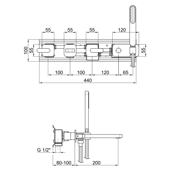 Аэратор, Душевой шланг, Душевая лейка, Подключение для душевого шланга с держателем, Излив, Скрытая монтажная часть