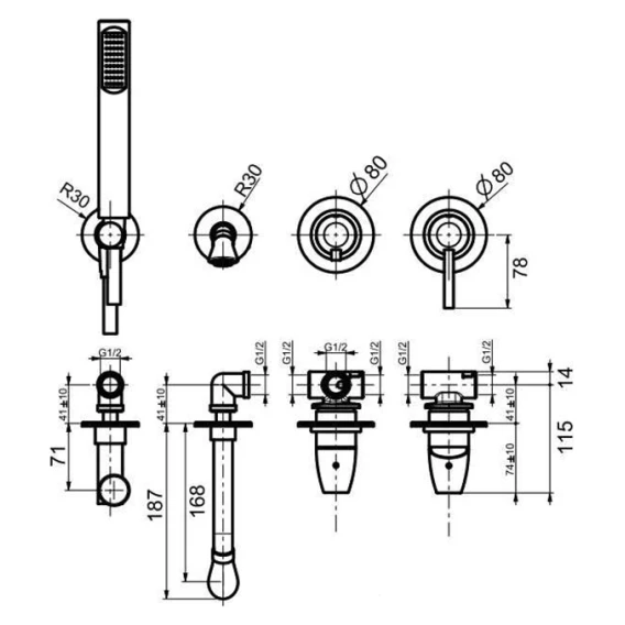 Аэратор, Душевой шланг, Душевая лейка, Подключение для душевого шланга с держателем, Излив, Скрытая монтажная часть
