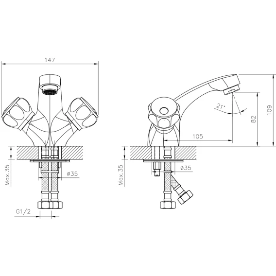 Раковина Arrow AGP32037C 55x50 см, подвесная, белый