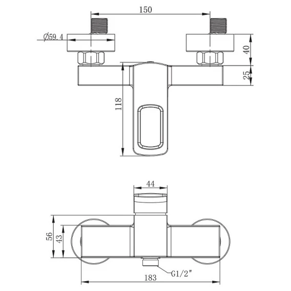 Металлическая розетка, Эксцентрики, Душевой шланг, Душевая лейка, Держатель для душевой лейки