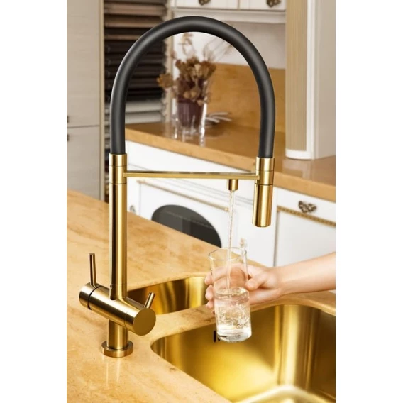 Смеситель для кухни с фильтром Omoikiri Kanto-PVD-LG светлое золото 4994014 + H851P00