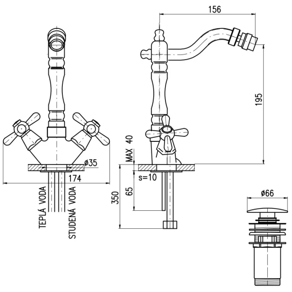 Смеситель для биде с донным клапаном Rav Slezak Morava Retro MK121.5/9