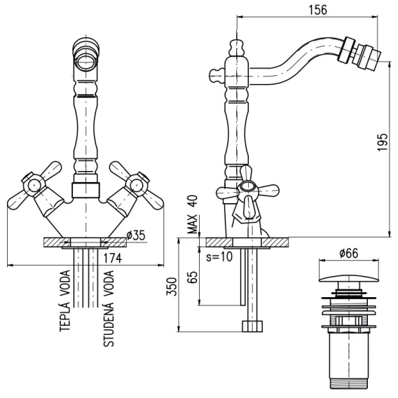Смеситель для биде с донным клапаном Rav Slezak Morava Retro MK521.5/9