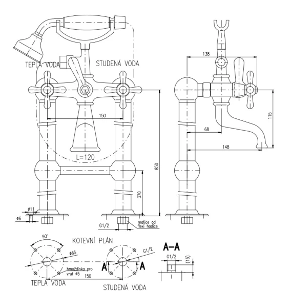 Смеситель напольный для ванны Rav Slezak Morava Retro MK350.5/2Z