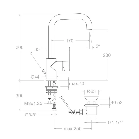 Крепление, Аэратор, Гибкая подводка, Донный клапан
