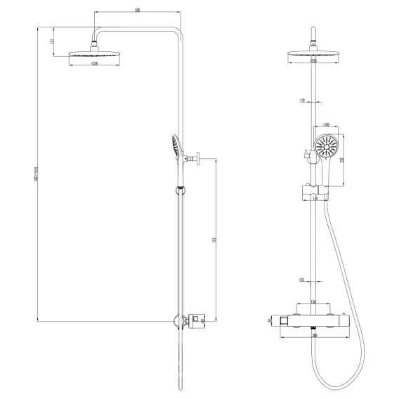 Металлическая розетка, Эксцентрики, Душевой шланг, Душевая лейка, Держатель для душевой лейки, Верхний душ, Кронштейн, Штанга душевая, Термостат