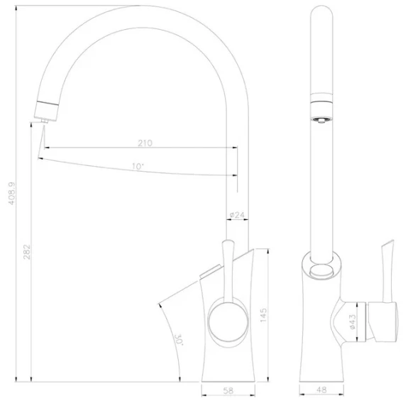 Длина излива 21 см