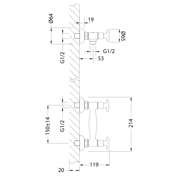 Металлическая розетка, Эксцентрики, Душевой шланг, Душевая лейка, Держатель для душевой лейки