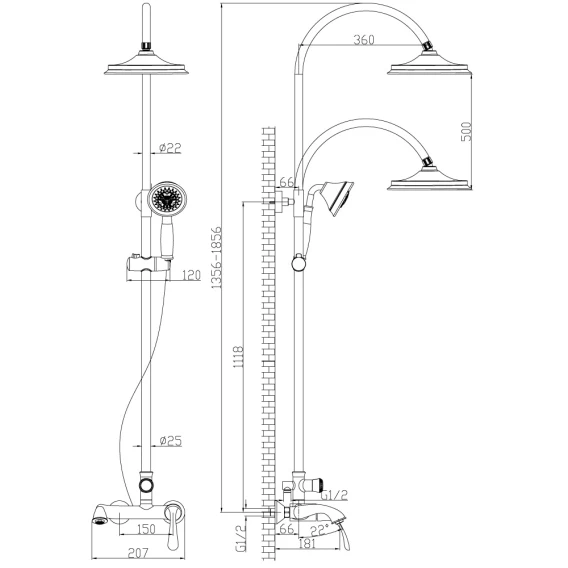 Аэратор, Металлическая розетка, Эксцентрики, Душевой шланг, Душевая лейка, Держатель для душевой лейки, Верхний душ, Смеситель, Кронштейн, Штанга душевая
