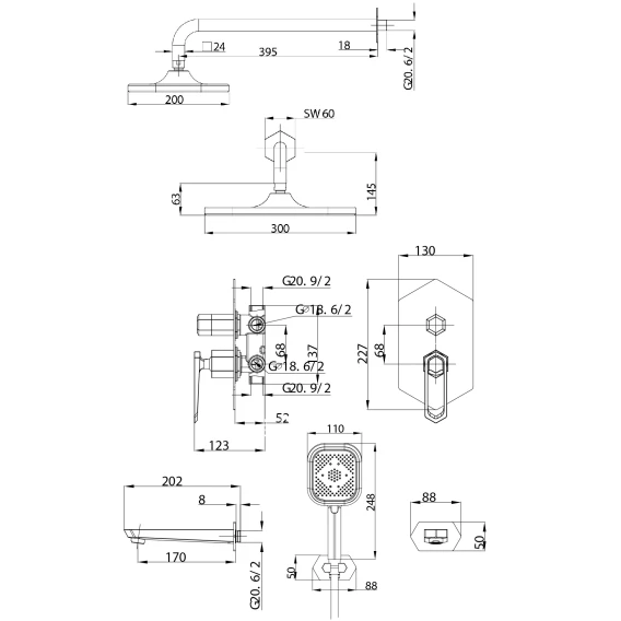Душевой комплект 300x200 мм Lemark Prizma LM3922C