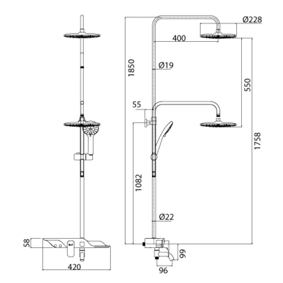 Эксцентрики, Душевой шланг, Душевая лейка, Держатель для душевой лейки, Верхний душ, Смеситель, Кронштейн, Штанга душевая