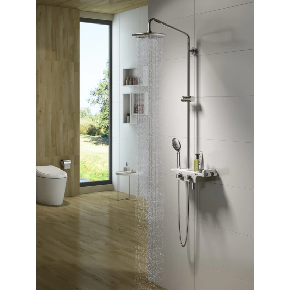 Металлическая розетка, Эксцентрики, Душевой шланг, Душевая лейка, Держатель для душевой лейки, Полочка, Верхний душ, Крючок, Кронштейн, Штанга душевая, Термостат