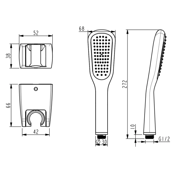 Аэратор, Металлическая розетка, Эксцентрики, Душевой шланг, Душевая лейка, Держатель для душевой лейки