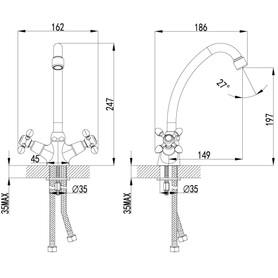 Смеситель для раковины без донного клапана GPD Kalipso MLB20
