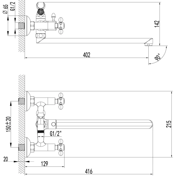 Аэратор, Металлическая розетка, Эксцентрики, Душевой шланг, Душевая лейка, Держатель для душевой лейки