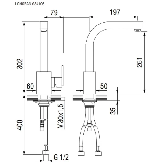 Смеситель для кухни хром Longran GQ G34106 - 05