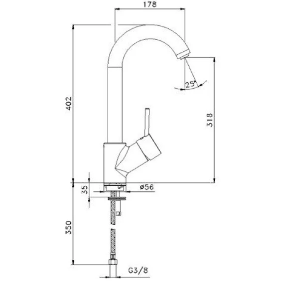 Длина излива 17.8 см