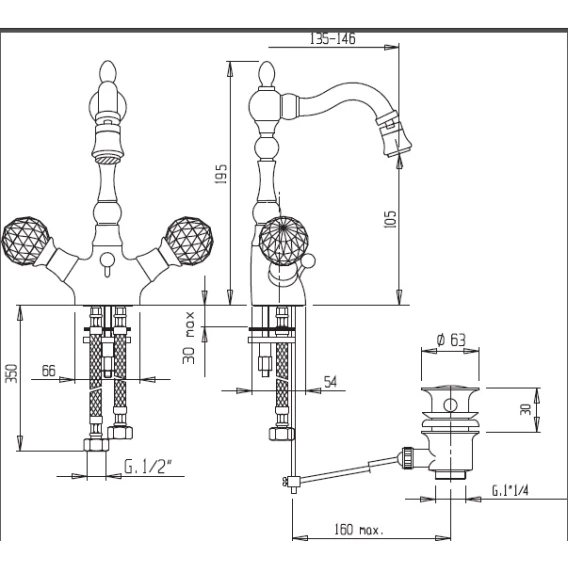 Смеситель для биде хром, ручки Swarovski Cezares Atlantis ATLANTIS-BS2-01-Sw