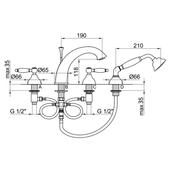 Смеситель на борт ванны Webert Alexandra AL730101065