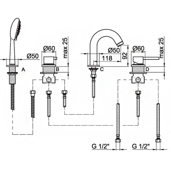 Аэратор, Душевой шланг, Душевая лейка, Держатель для душевой лейки