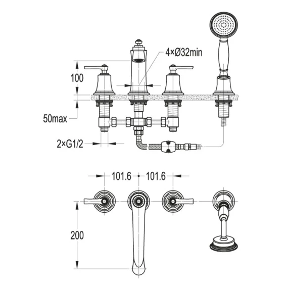 Смеситель на борт ванны Cezares LIBERTY-F-BVD4-01