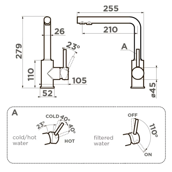 Высота излива 25 см