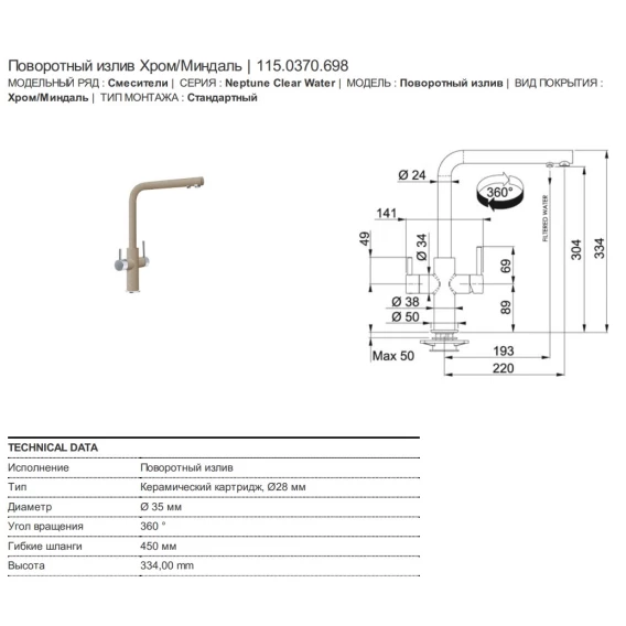 Смеситель отлично подошел к мойке Франке цвета миндаль. Тонкий аккуратный корпус, вращается плавно, смотрится элегантно. Подключили к смесителю фильтр для воды, покупкой довольна.