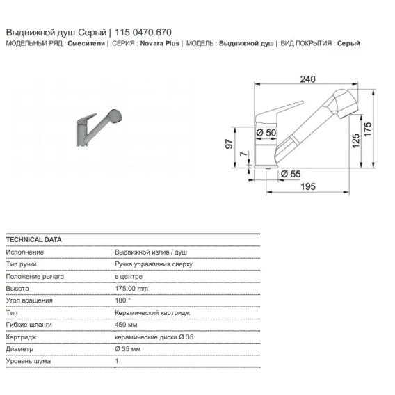 Крепление, Аэратор, Гибкая подводка, Душевой шланг, Душевая лейка