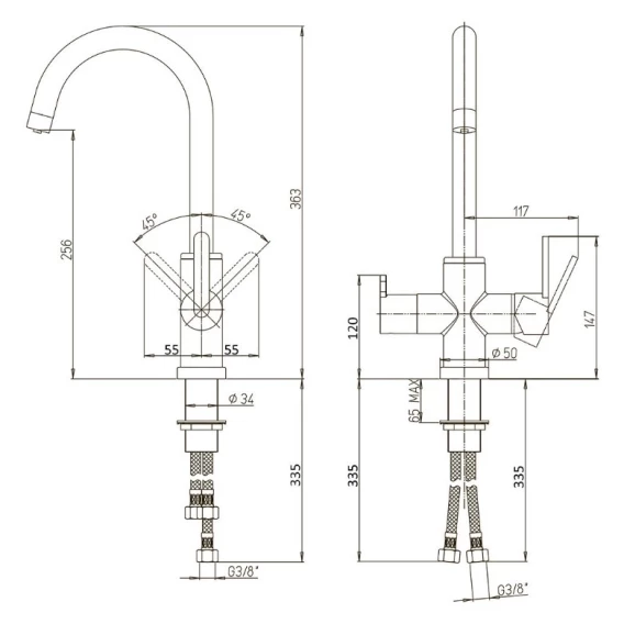 Смеситель для кухни с подключением к фильтру Paini Cox 78CR6433VL2KM
