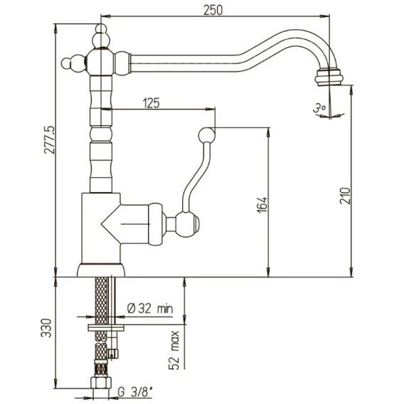 Длина излива 25 см