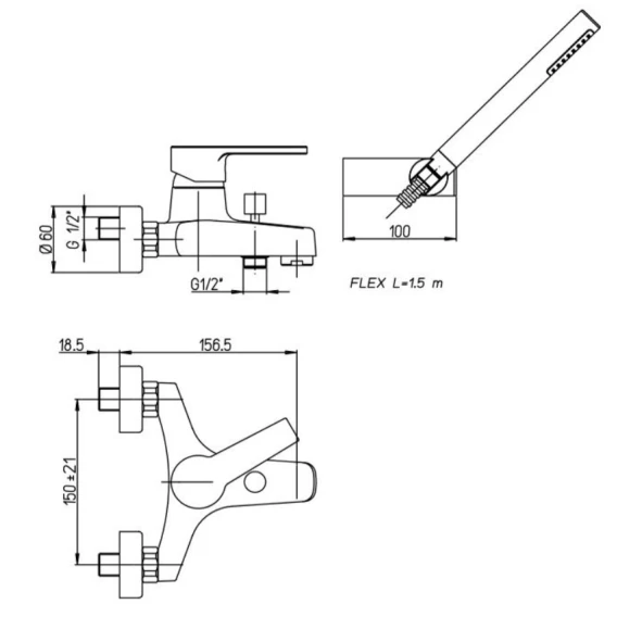 Аэратор, Металлическая розетка, Эксцентрики, Душевой шланг, Душевая лейка, Держатель для душевой лейки