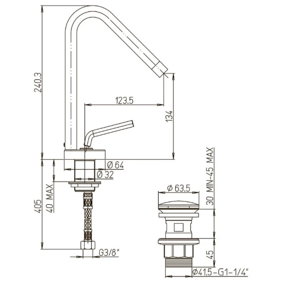 Крепление, Аэратор, Гибкая подводка, Донный клапан