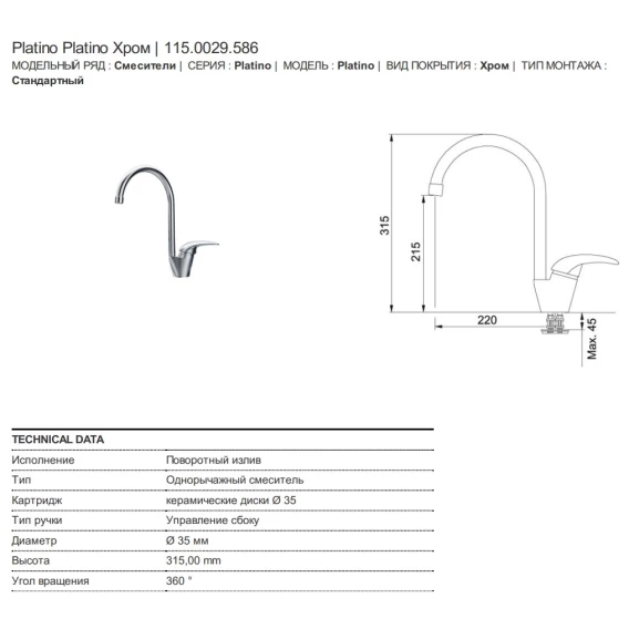 Высота излива 21.5 см