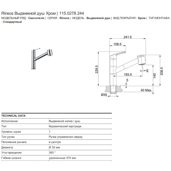 Смеситель для кухни Franke Rinsos 115.0278.244