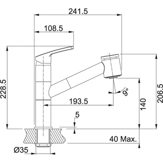 Длина излива 19.35 см