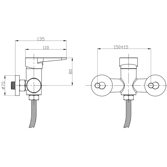 Металлическая розетка, Эксцентрики, Душевой шланг, Душевая лейка, Держатель для душевой лейки