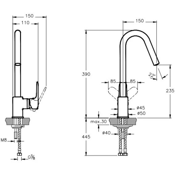 Длина излива 15 см