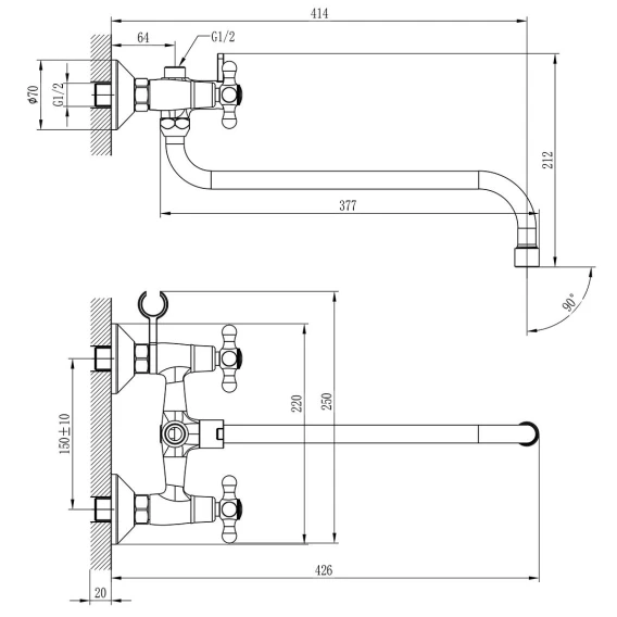Аэратор, Металлическая розетка, Эксцентрики, Душевой шланг, Душевая лейка, Держатель для душевой лейки
