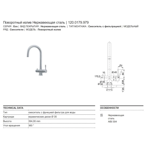 Смеситель для кухни с подключением к фильтру Franke EOS 120.0179.979