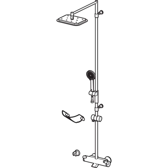 Аэратор, Металлическая розетка, Эксцентрики, Душевой шланг, Душевая лейка, Держатель для душевой лейки, Верхний душ, Кронштейн, Мыльница, Штанга душевая, Термостат