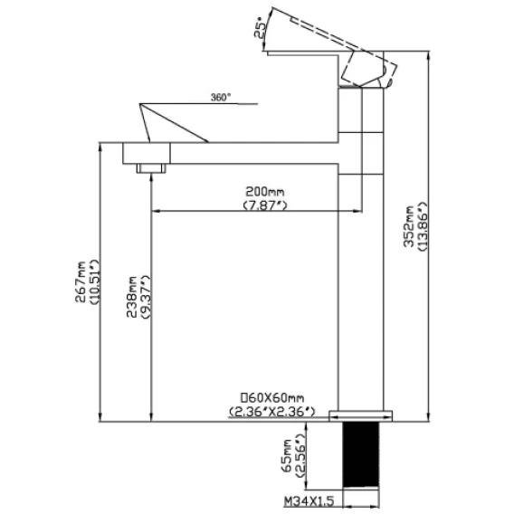 Высота излива 23.8 см