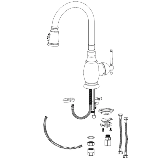 Крепление, Аэратор, Гибкая подводка, Душевой шланг, Душевая лейка