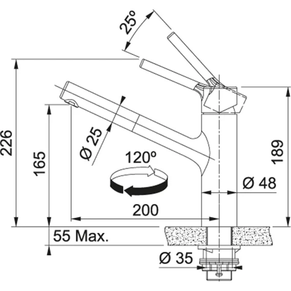 Высота излива 16.5 см