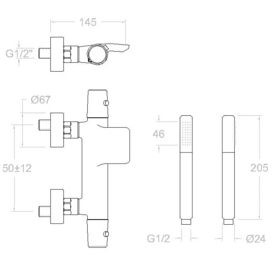 Аэратор, Металлическая розетка, Эксцентрики, Душевой шланг, Душевая лейка, Держатель для душевой лейки